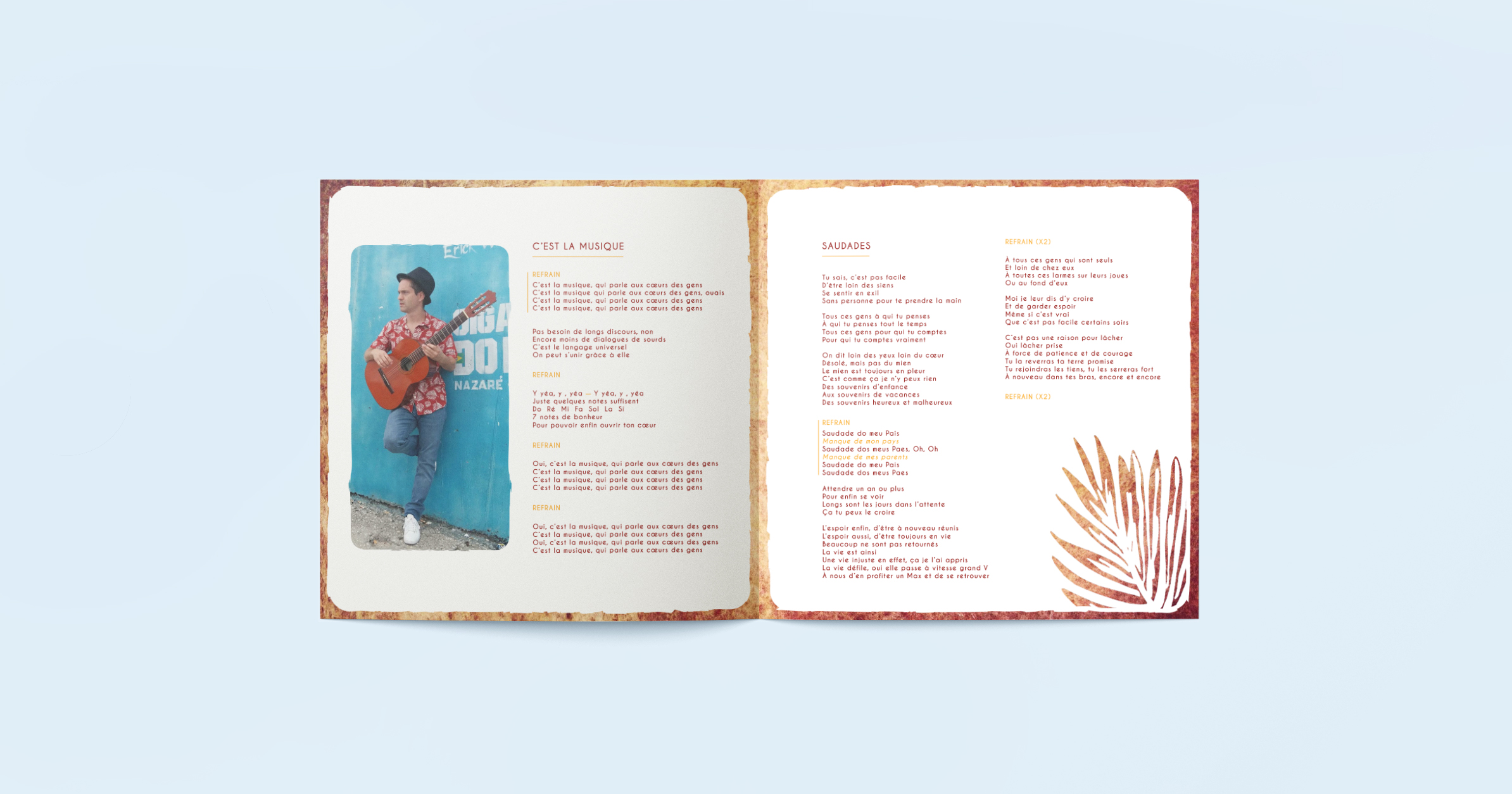 D’une période mélancolique de sa vie, il réussit à mettre en lumière et en musique ses textes, sa saudade et surtout l’amour !